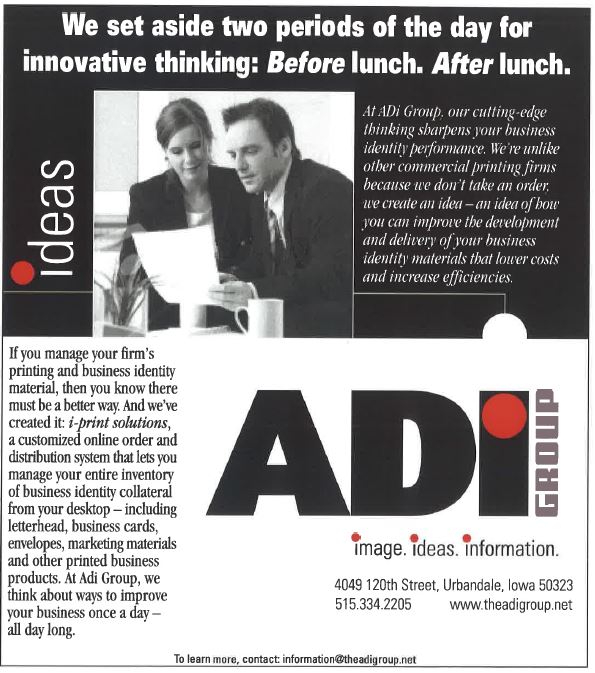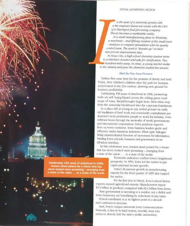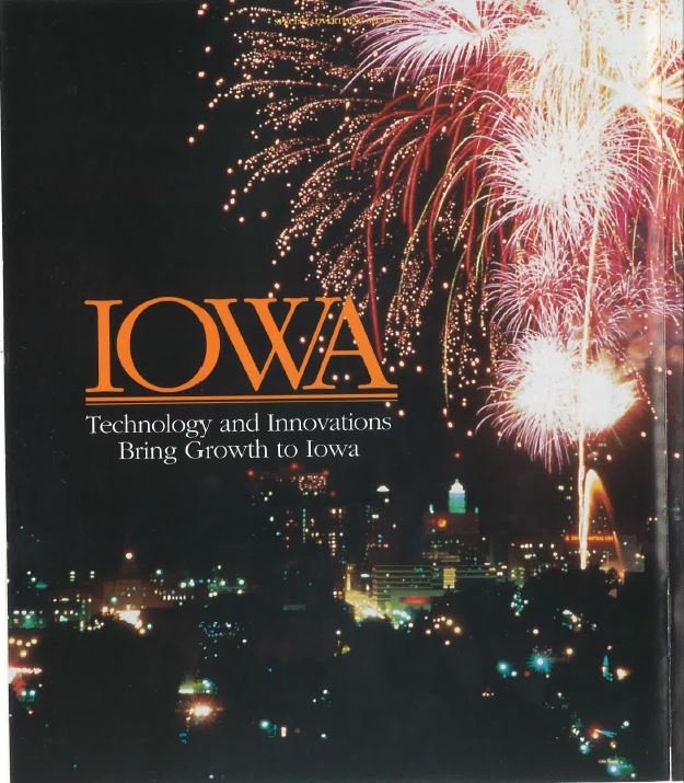 Promotional brochure for a special Iowa Department of Economic Development publication – a 200+-page hardbound book featuring the benefits of doing business in Iowa – seeking corporate support from Iowa companies interested in advertising in the book. (Cover and page one copy scan) -